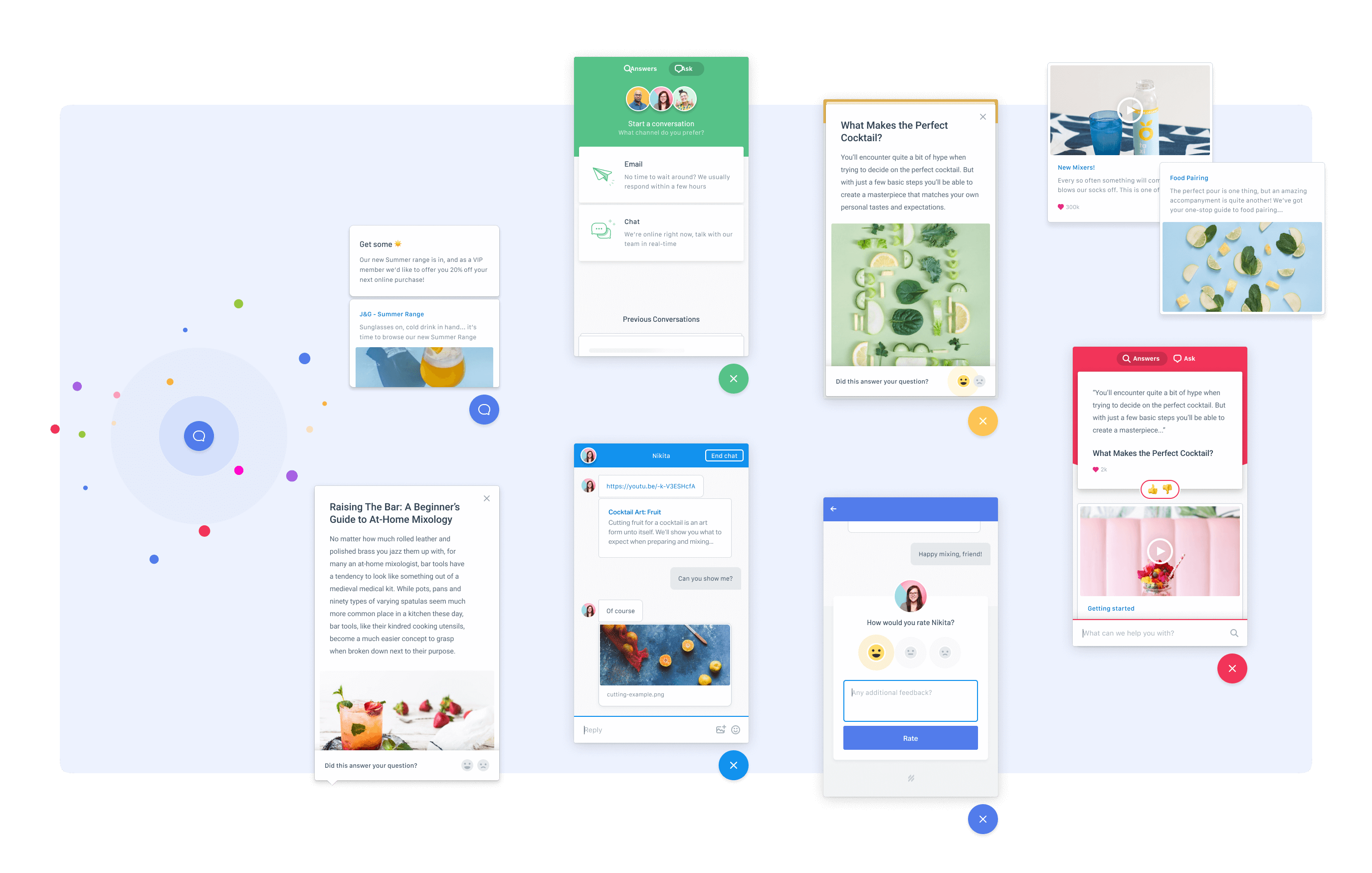 Another key realization was the importance of UI details and micro-interactions to give each Beacon a fun and friendly personality, whilst also remaining unique to the brands and websites that were hosting the widget. As each Beacon could be branded and translated, personality came in the form of subtle animation and fun, unusual and sometimes-a-bit-weird interactions.