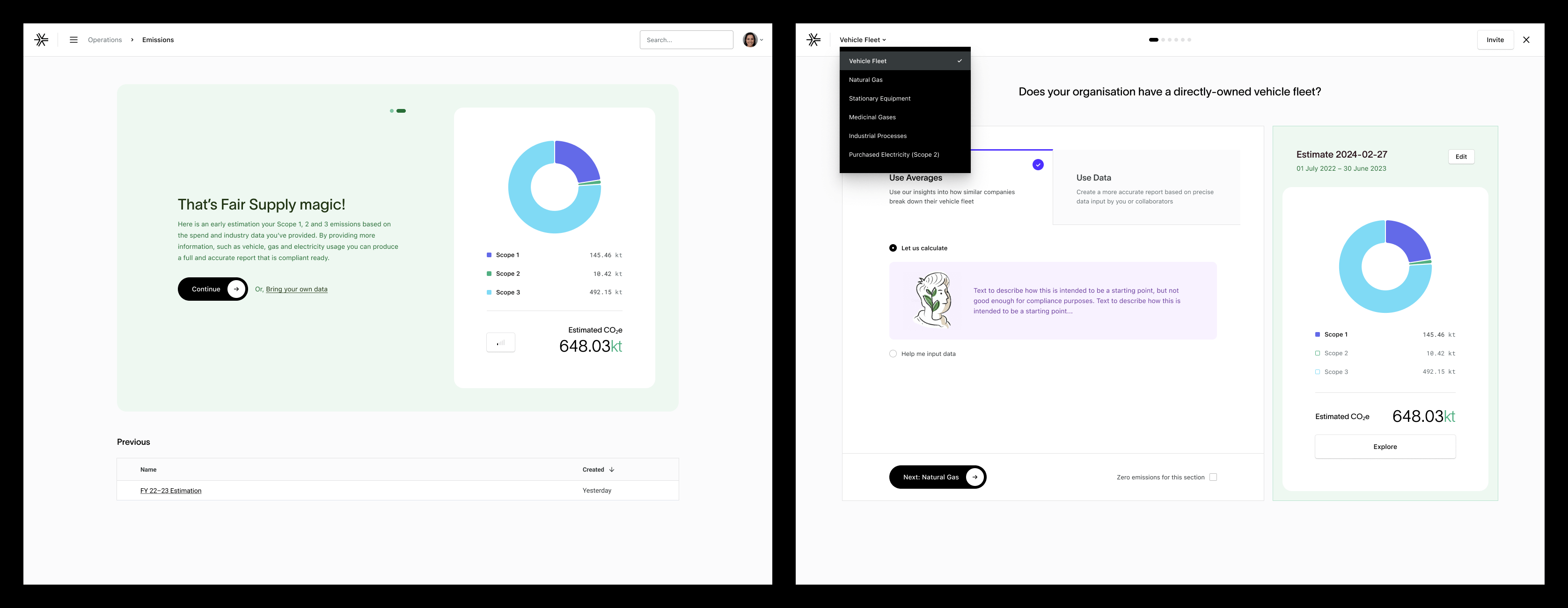 One of Fair Supply’s standout features is a powerful calculator that combines AI, vast datasets, and Nobel Prize-winning data modeling techniques to help companies pinpoint the carbon impact of their activities.