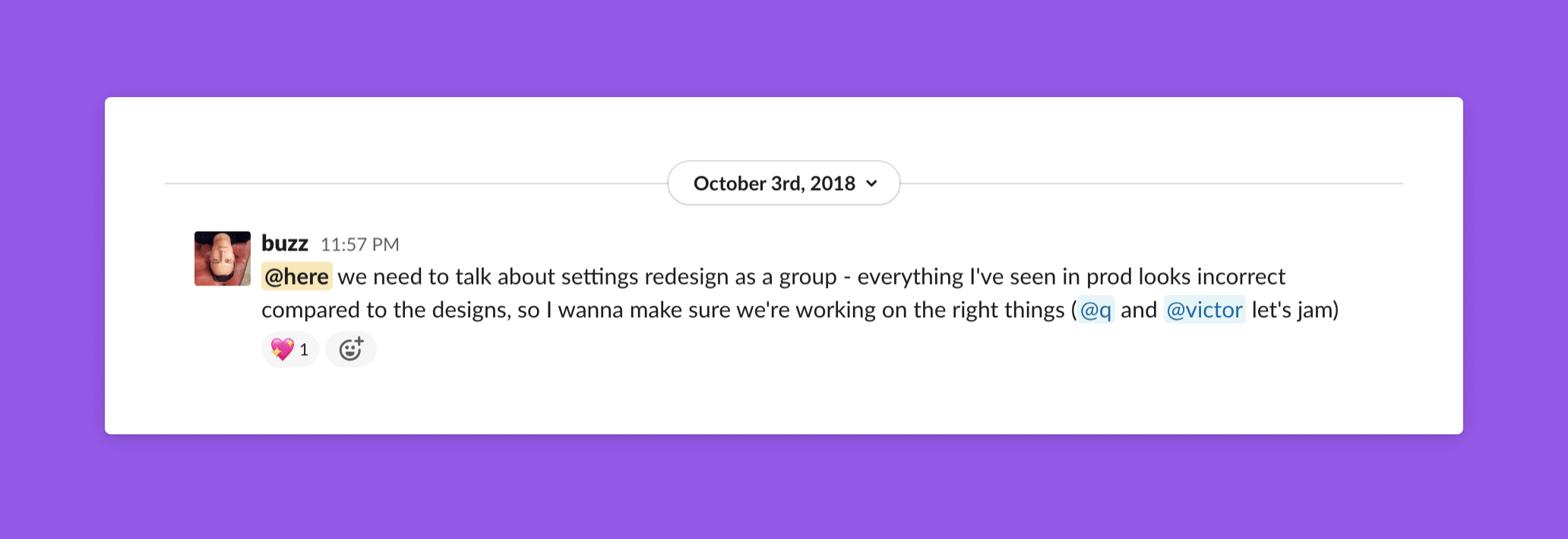 Having created and worked with design systems of various sizes at previous companies — with varying levels of frustration — I was relieved to find that Help Scout didn’t have one. Instead designers created the right UI for the job rather than retrofitting existing components… which worked well, until it didn't.