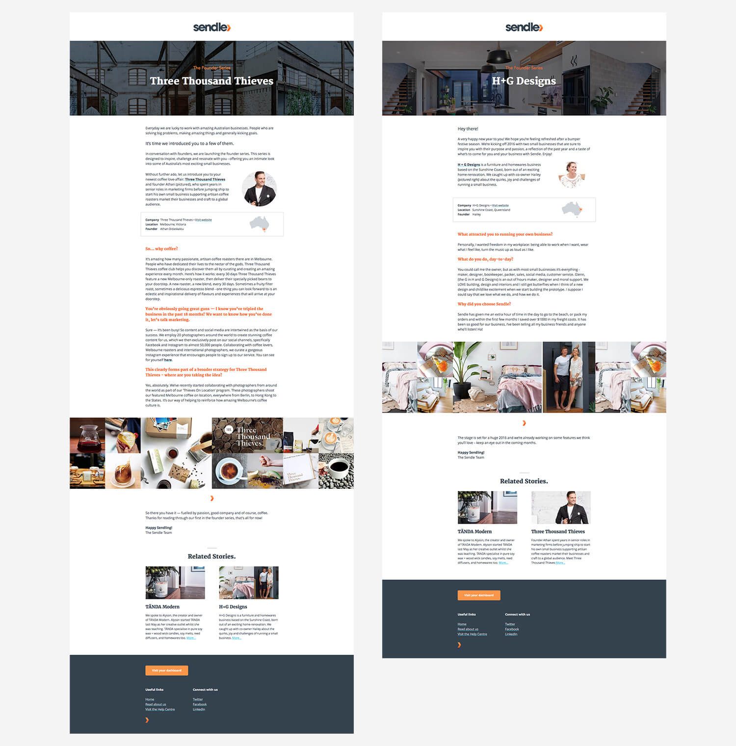 I also had a hand in extending the brand through various marketing channels. One of the most rewarding outcomes was a weekly email series that showcased our customers and how they were using Sendle. Instead of pushing our product, we celebrated the makers and small businesses that used us — which was really well received. It was also a good excuse to use the Email Builder I had previously designed.