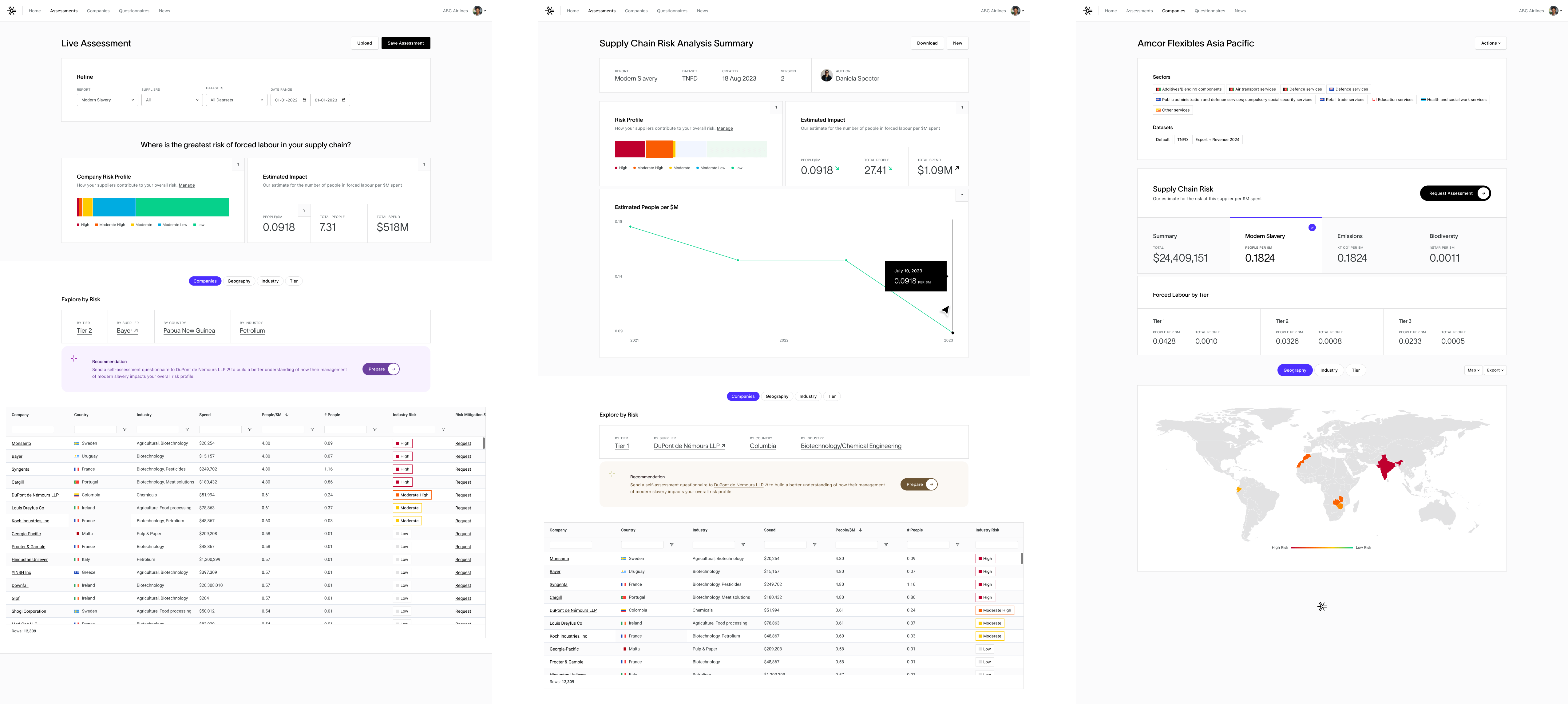 An unexpected benefit of reducing brand bias in the UI was our ability to present unfavorable data neutrally and without risk to the brand. This abstraction allowed us to communicate critical insights — like “you need to address the serious modern slavery risks in your supply chain” — without coming across as pushy, preachy, or alarmist. This balanced tone helped create trust and encouraged users to engage with the data thoughtfully.