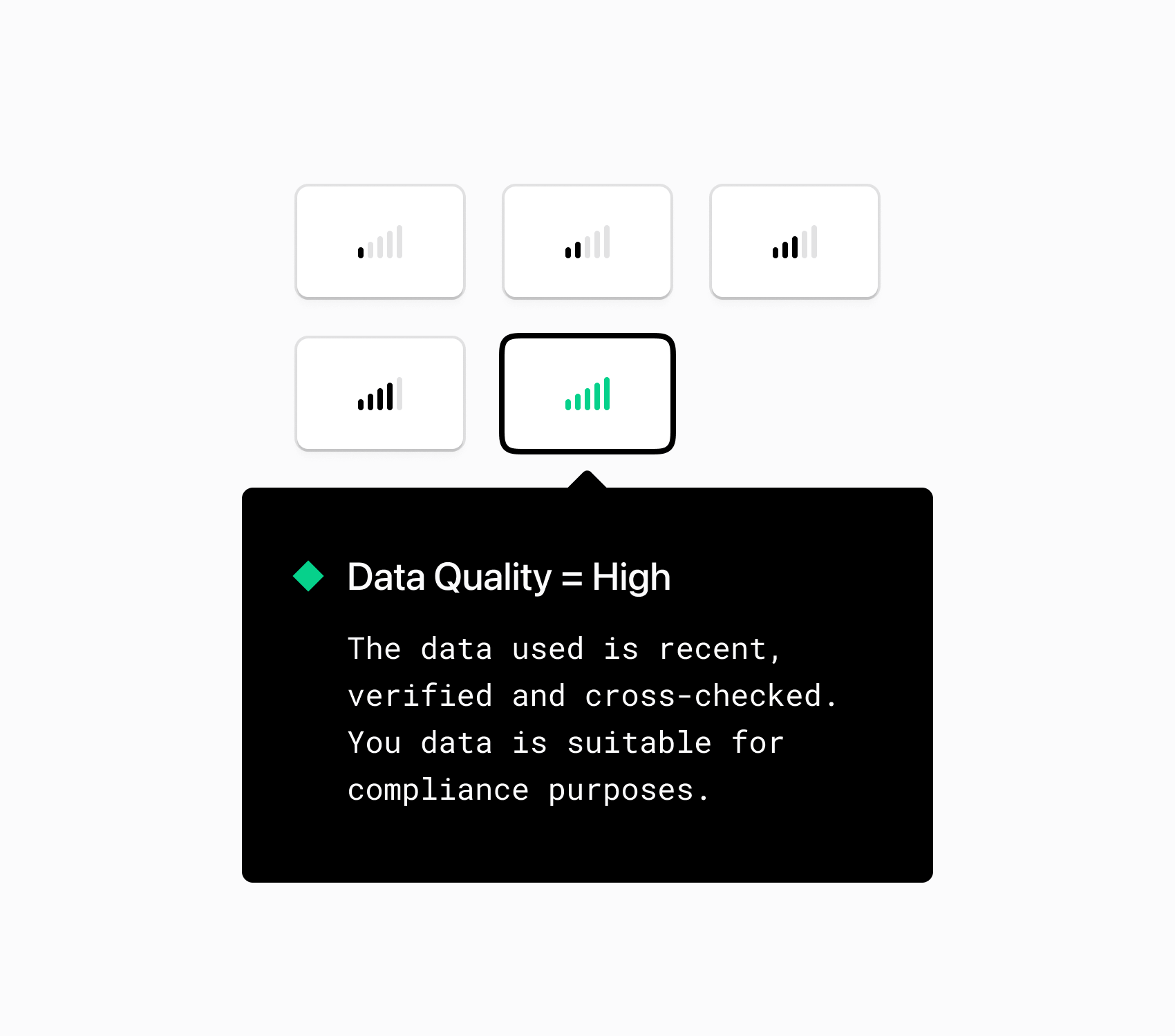 One of my favorite examples was tackling how to communicate that some information was an “educated guess” — based on estimates and intelligence, but still an approximation. To maintain transparency without undermining usability, I introduced a data-reliability rating that could be displayed alongside any data point. This approach offered users a clear sense of accuracy while encouraging them to strengthen their data sources, striking a balance between transparency and trust.